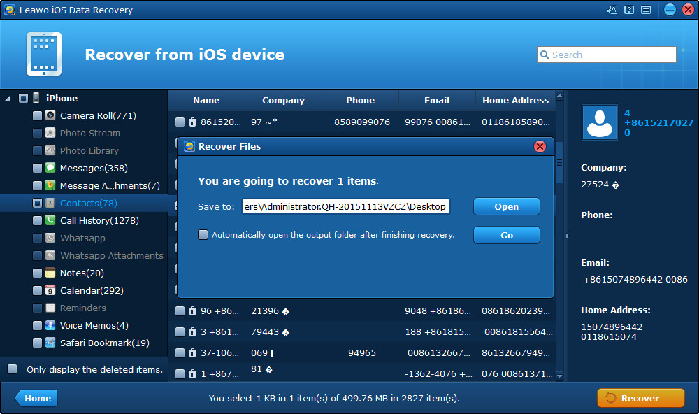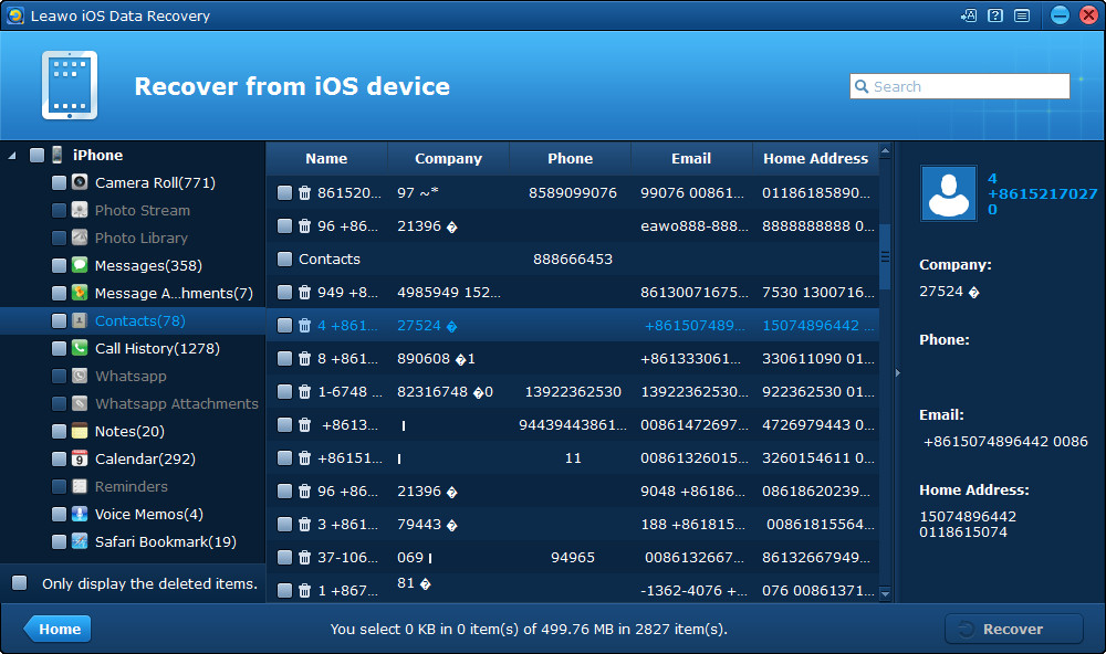 正如剛才提到的, Leawo iTransfer 可以幫助您輕鬆地將 iPhone 聯絡人備份到電腦上。實際上,有時我們可能會錯誤地從 iPhone 中刪除聯絡人,並想找回這些聯絡人進行備份。那你該怎麼辦?不用擔心。 Leawo iOS數據恢復器 會幫助你的。