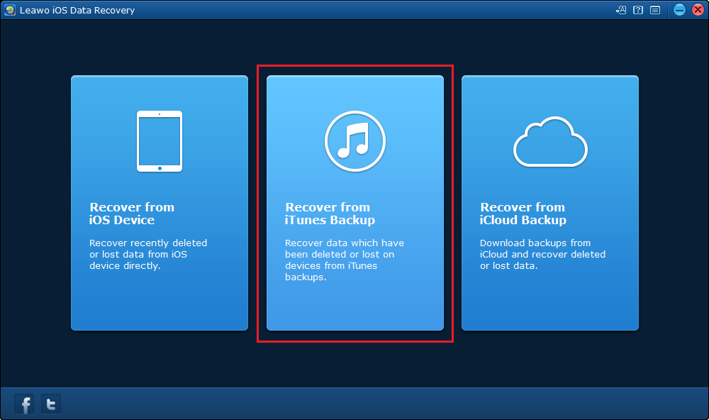 1. 啟動 Leawo iOS資料恢復並選擇第二種模式, 從iTunes備份中恢復.