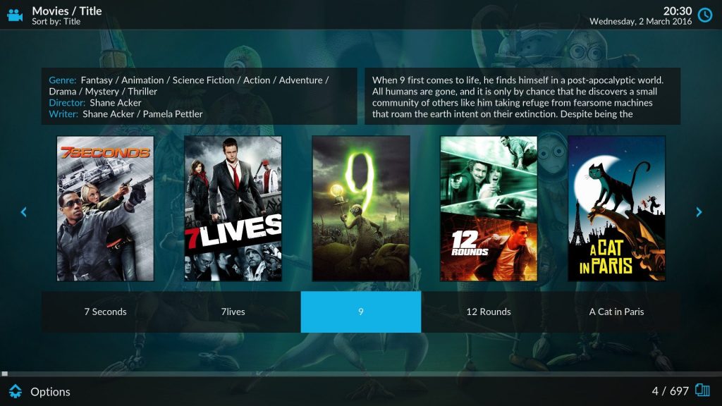 透過使用線上“抓取工具”,您可以在 Kodi 上組織您的媒體。就像 Emby 和 Plex 一樣,它收集元資料以使您的瀏覽更輕鬆。它支持 播放 DVD 光碟、藍光、.ogg、RealMedia 和 VIVO,這對 Kodi 用戶來說是相當有利的。