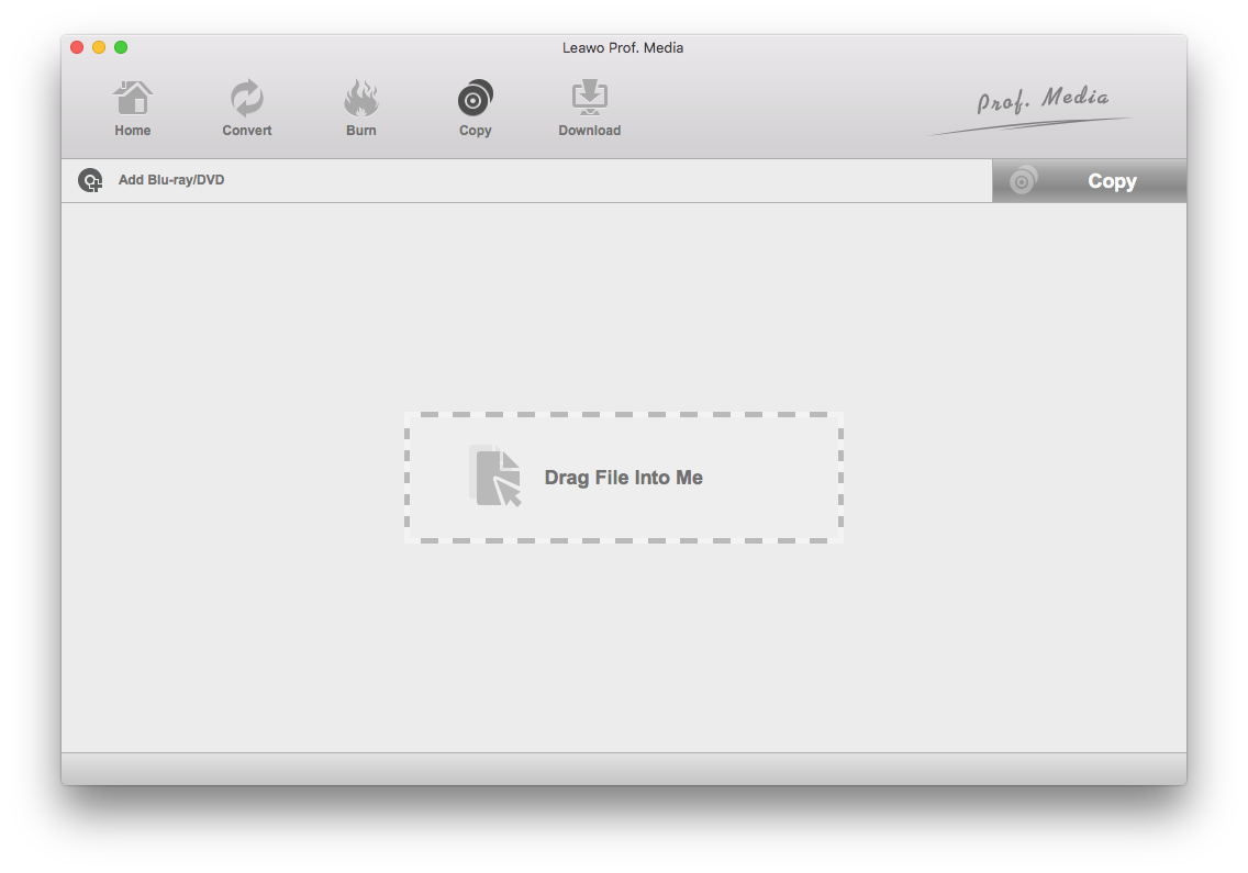 安裝後,啟動軟體。 Leawo Mac 版 DVD 複製器是一個模組 Leawo Prof. Media,並且您需要輸入 DVD複製器 模組啟動後。然後,點擊 添加藍光/ DVD 按鈕,然後從下拉式選單中選擇從 CD-ROM、資料夾或 ISO 檔案新增 DVD 內容。