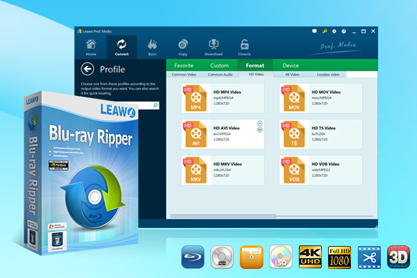 ☉ 將藍光/DVD 轉換為 MP4、MKV、AVI、MOV、FLV 等 180+ 高畫質/標清格式