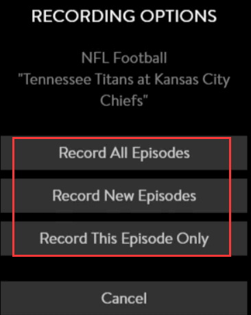 第一步: 您將獲得多種錄音選項。要僅錄製某一集,您必須選擇“僅錄製此集”設定。