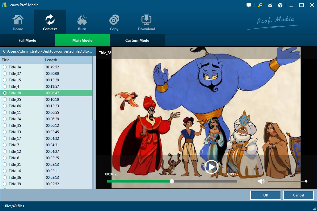 從三個可用選項(即完整電影、主要電影和自訂模式)中選擇一種模式,以決定要翻錄和轉換的部分。請注意,完整電影表示您將翻錄整個光碟,主電影表示僅翻錄電影部分,而自訂模式可讓您準確翻錄光碟中指定的內容。決定翻錄哪種模式後,按一下「確定」繼續下一步。