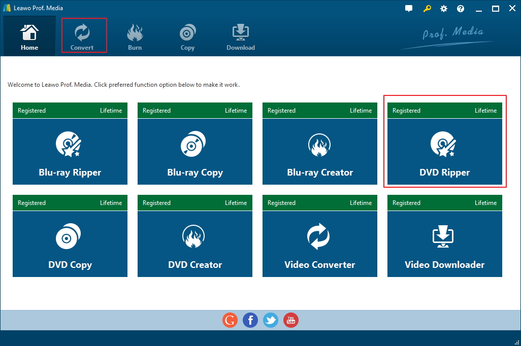 該票據 Leawo DVD 轉檔器包含在 Prof.Media 中,因此您需要開啟 Prof.Media 才能啟動 DVD 轉檔器。點擊 DVD 轉檔器圖示將其開啟。