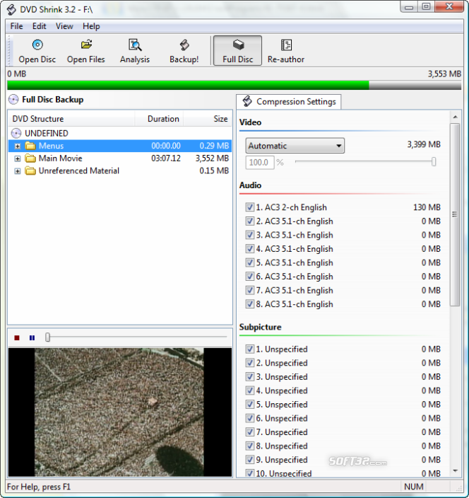 最後一個是 DVD 縮小。一般來說,DVD Shrink 是一款免費的 DVD 光碟備份軟體。您可以將此軟體與您選擇的 DVD 燒錄軟體結合使用,為任何 DVD 視訊光碟製作備份副本。這個程序非常靈活,它試圖盡可能地平衡品質和內容。您可以透過剪切 DVD 中不需要的區域來提高輸出副本的品質。