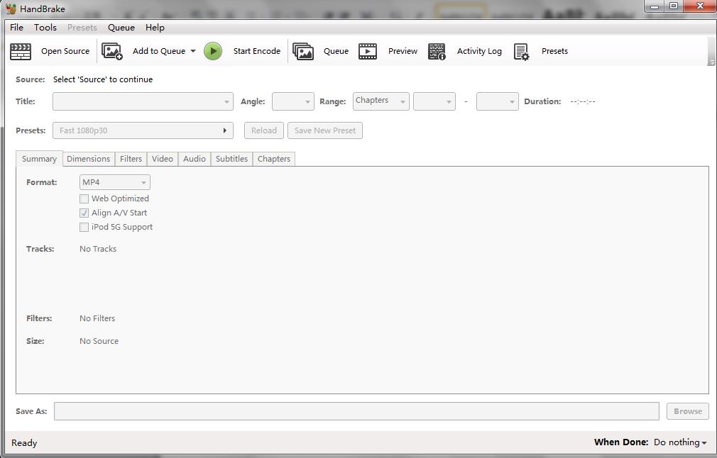 找到下面的「另存為」方塊。然後,您可以選擇希望 HandBrake 放置新影片的確切目的地。然後點擊工具列上的“開始”按鈕開始轉換。