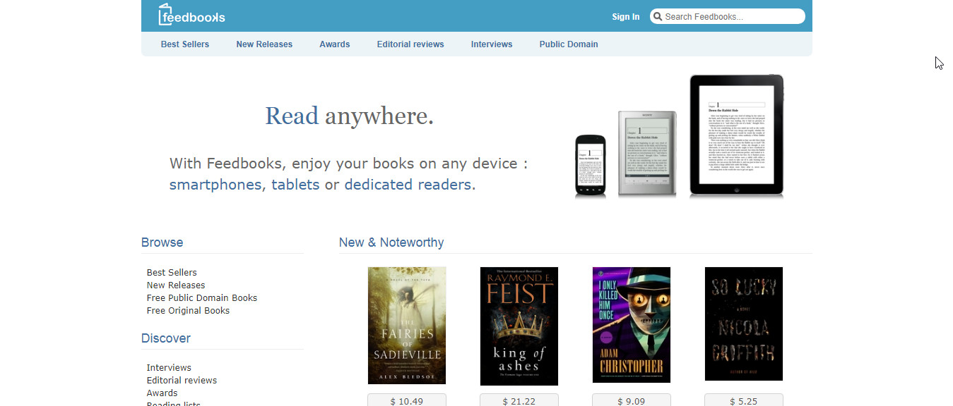 Feedbooks 是一家電子書零售商,與龐大的閱讀系統和社交網路生態系統相連。每個月,Feedbooks 都會向日益壯大的讀者群分發數百萬本書。在 Feedbooks 上,您可以找到公共領域(公共領域部分)和免費當代書籍(原始書籍部分),包括小說和非小說。由於該網站位於法國,因此有很多法語以及其他語言(不僅僅是英語)的標題。