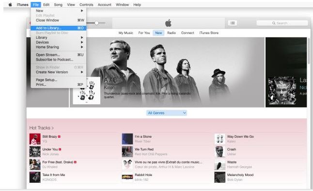 首先打開iTunes,然後您可以單擊菜單欄上的“文件”>“添加到庫”瀏覽並找到您下載的Spotify音樂播放列表,然後單擊打開將Spotify播放列表導入Apple音樂。