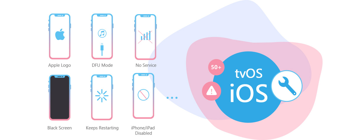 1.修復黑屏死機、卡住蘋果標誌、卡在recovery模式等20多個問題。