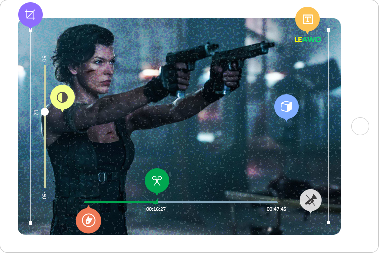 除了用作 Mac 媒體檔案轉檔器之外, Leawo Prof. Media Mac 也可以作為 Mac 媒體播放器軟體在 Mac 上播放各種媒體檔案。它可以是全區域藍光播放器播放 13K 藍光光碟、全區 DVD 播放器、免費高畫質影片播放器、音訊播放器、ISO 映像播放器、線上影片播放器等。 同時,內建的多媒體播放器,在您編輯影片、選擇字幕與音軌、設計碟片選單、與新增4D效果時,可以提供即時的預覽。