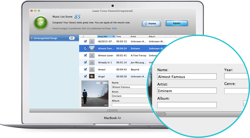 作為專業的 Mac iTunes 清理程序, Leawo Tunes Cleaner Mac 版本還可以檢測和刪除iTunes 中的重複項,手動添加和編輯音樂標籤,如藝術家、專輯、專輯插圖、歌曲名稱等,保存未修復的音樂檔案以供將來修復,一鍵將修復結果應用到iTunes 等。